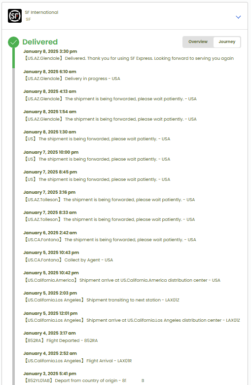 Depending on which logistics provider is handling your package, you might see different tracking updates.