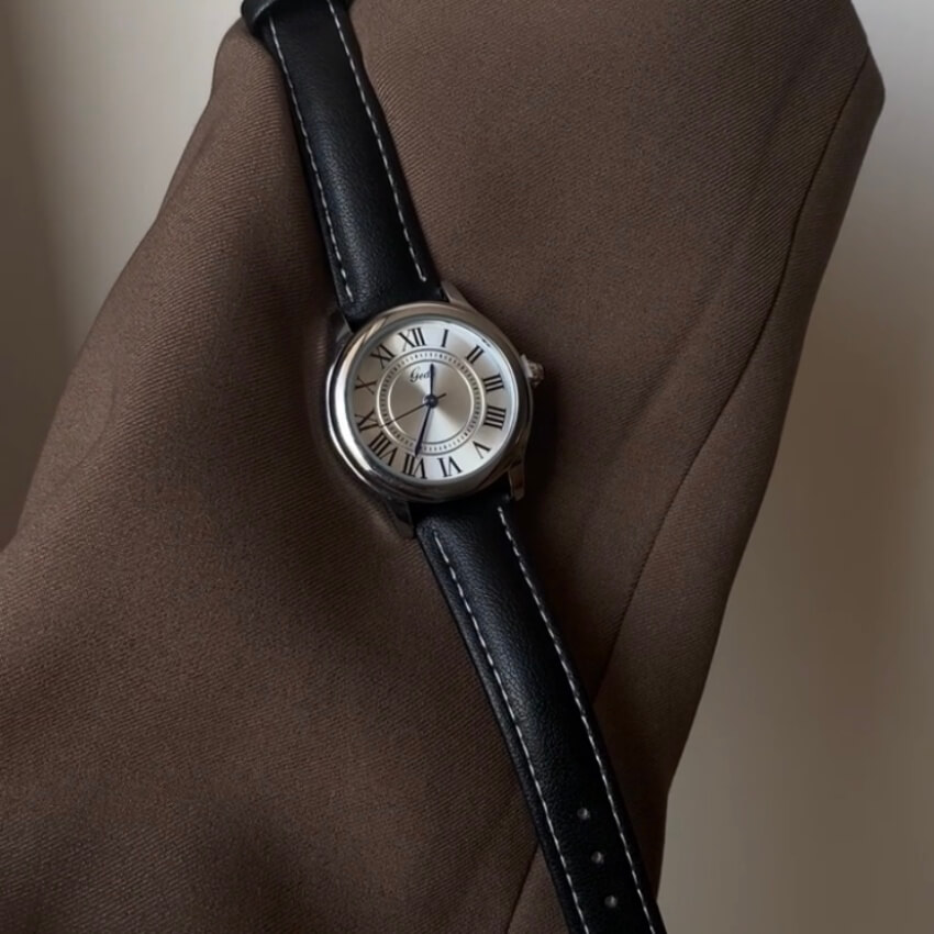 The round dial is perfectly balanced, offering a clean and minimalist look that complements any outfit, from casual daywear to sophisticated evening attire. The watch’s design is both versatile and classic, making it an ideal choice for women who appreciate understated elegance. The genuine leather strap not only enhances the watch’s aesthetic but also provides a comfortable fit, allowing you to wear it throughout the day with ease.