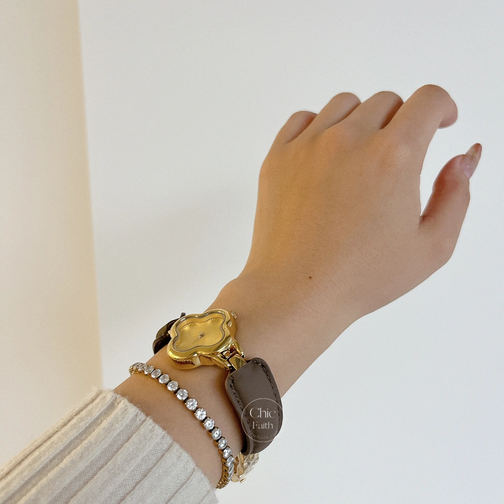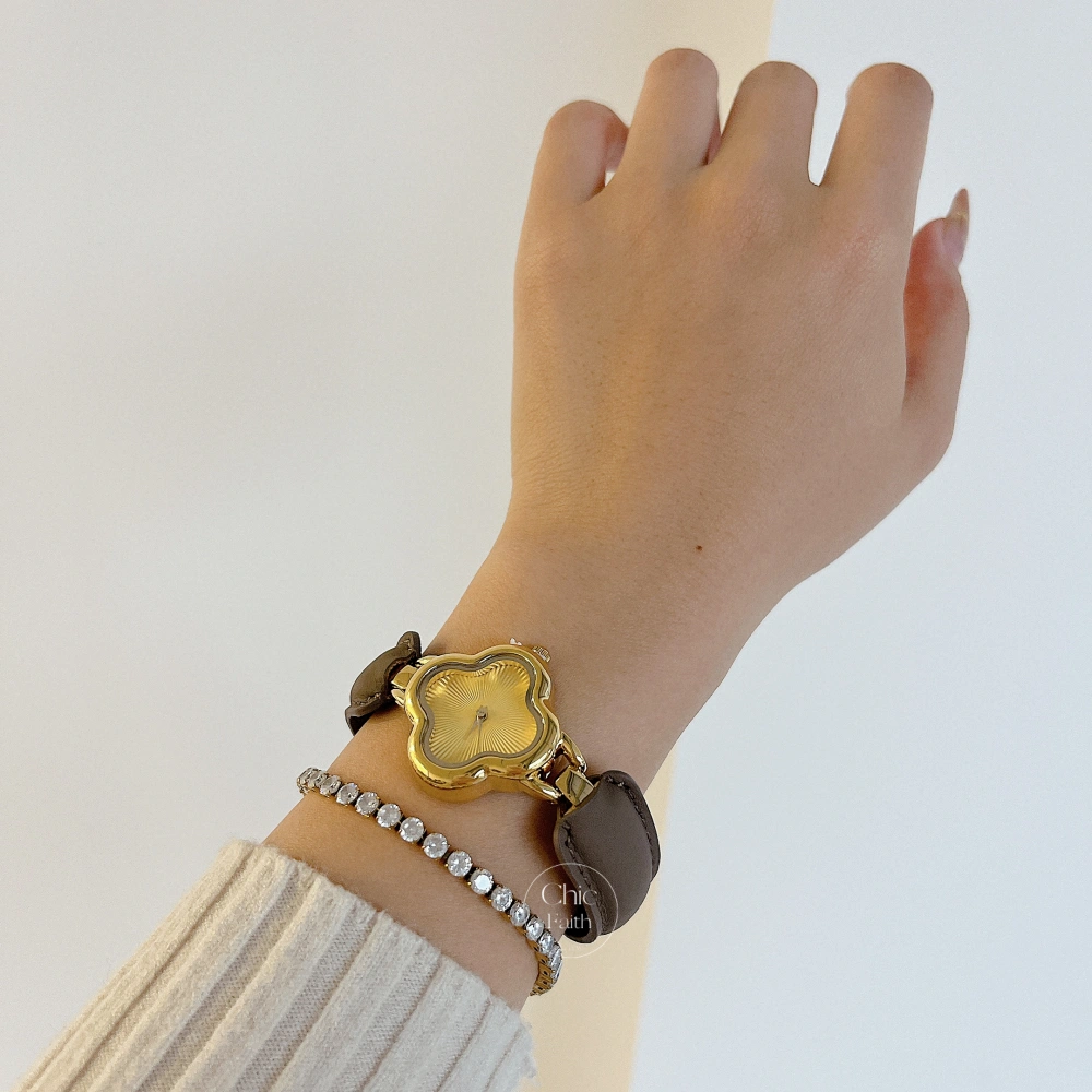 Four Leaf Clover Classic Genuine Leather Watch for Women